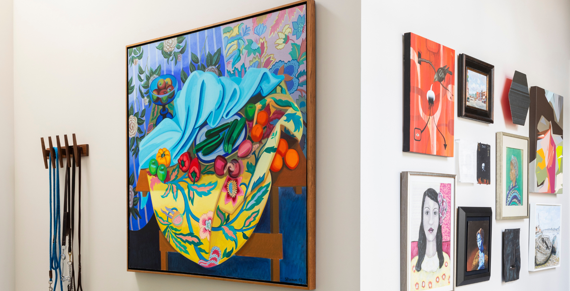 Obviously, size does matter. Smaller works are often more approachable, price wise. A gallery wall can make a great impact when a number of pieces are gathered together to create a larger moment. Another benefit—it’s easy to swap out pieces as you grow your collection.
