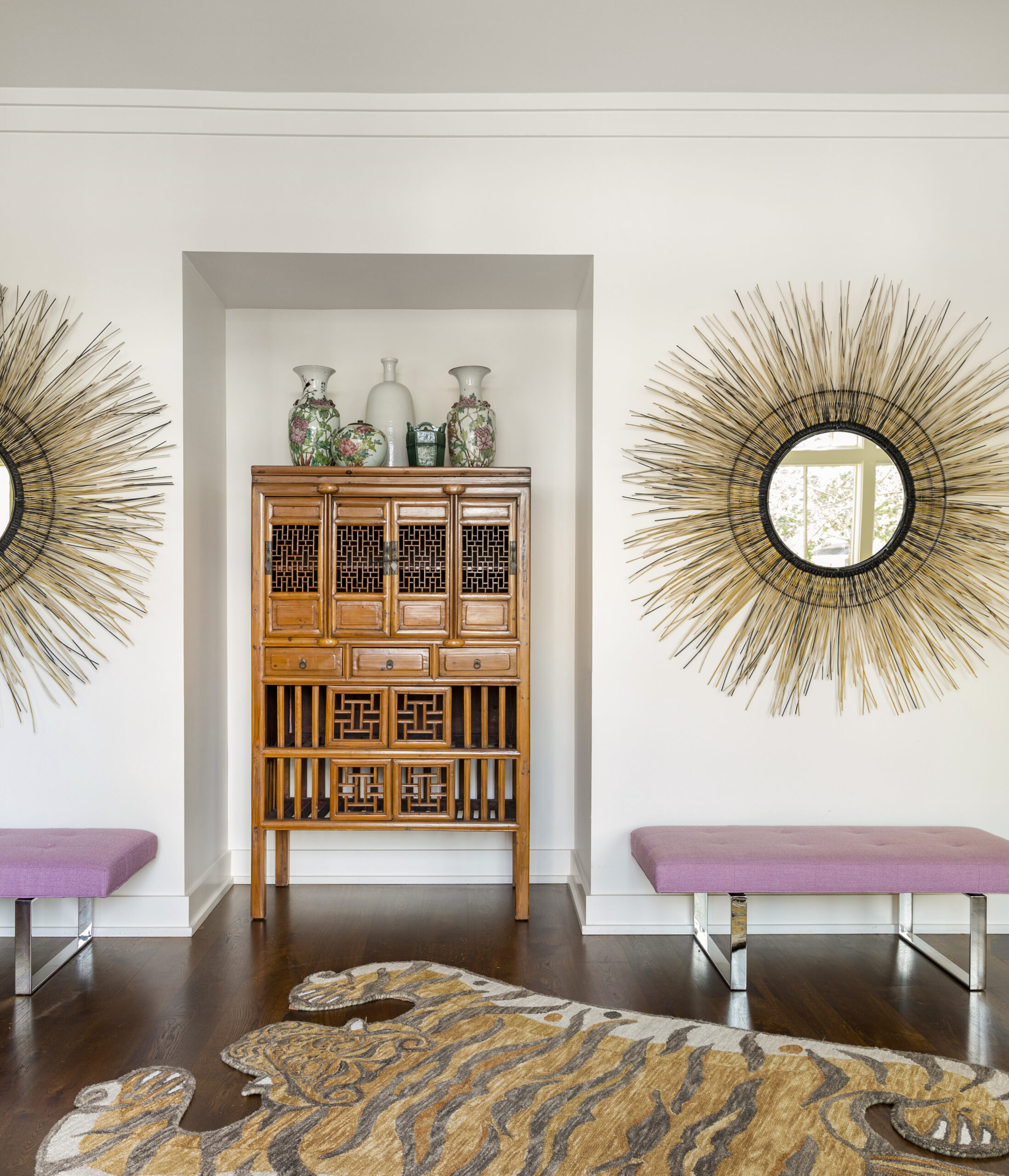 Infused with bold color, eclectic artistry, and durable, pet-friendly materials, this design effortlessly balances energy and tranquility. Thoughtfully curated details—like a Porter Teleo ceiling inspired by kintsugi and a serene meditation space—showcase how beauty and functionality can harmoniously coexist.